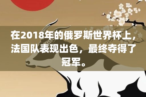 在2018年的俄罗斯世界杯上,法国队表现出色,最终夺得了冠军。