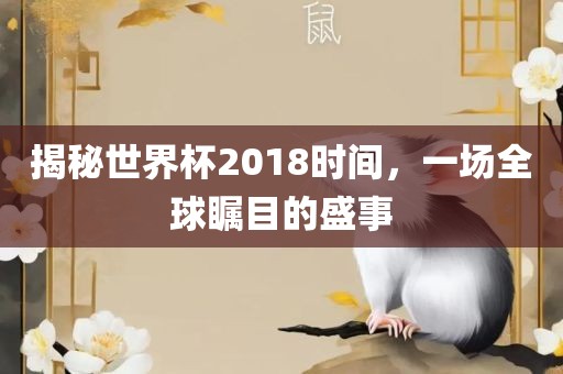 揭秘世界杯2018时间,一场全球瞩目的盛事