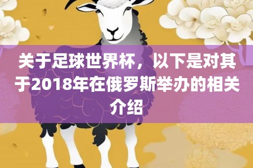 关于足球世界杯,以下是对其于2018年在俄罗斯举办的相关介绍