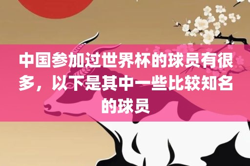 中国参加过世界杯的知名球员包括多位优秀的足球运动员。他们代表中国国家队参加了世界杯比赛,展现了自己的实力和才华。这些球员在中国足球界以及国际足坛上都有着广泛的影响力,他们的表现也为中国足球的发展做出了贡献。