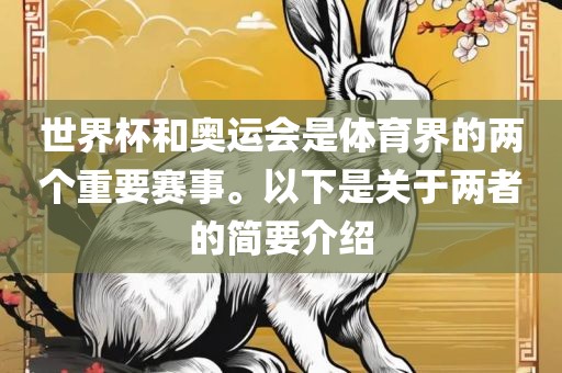 世界杯和奥运会是体育界的两个重要赛事。以下是关于两者的简要介绍