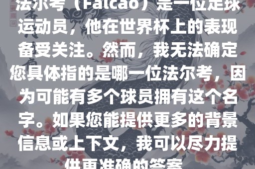法尔考(Falcao)是一位足球运动员,他在世界杯上的表现备受关注。然而,我无法确定您具体指的是哪一位法尔考,因为可能有多个球员拥有这个名字。如果您能提供更多的背景信息或上下文,我可以尽力提供更准确的答案。