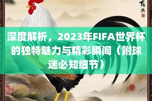 摘要:本文深度解析了2023年FIFA世界杯的独特魅力和精彩瞬间。文章介绍了比赛中的亮点和球迷必知的细节,包括各参赛队伍的实力对比、赛场上的精彩对决以及球迷文化等。文章旨在让读者感受到世界杯的魅力,并了解比赛中的重要信息和细节。