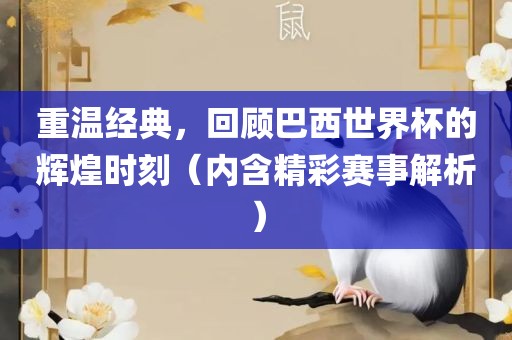 重温经典,回顾巴西世界杯的辉煌时刻。文章将带你回顾那届足球盛事的精彩瞬间,包括激动人心的赛事解析。文章将概述比赛的精彩场面和激动人心的对决,展现足球的魅力与激情。