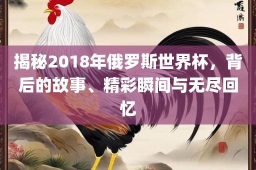 摘要:2018年俄罗斯世界杯是一场足球盛宴,背后隐藏着无数故事和精彩瞬间。从准备工作到比赛日,每个细节都充满回忆。本文带你领略世界杯背后的故事,包括激动人心的比赛、球员的奋斗与荣耀,以及无数令人难忘的瞬间。这是一届充满情感与激情的世界杯,留下了深刻的印象和回忆。