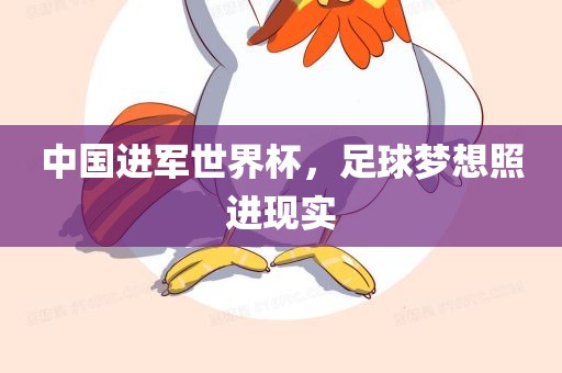 中国进入世界杯是无数中国人的梦想和期待,经过数十年的发展努力,中国足球正逐步走向强盛,我们有理由相信,在不久的将来,中国足球将实现这一伟大目标,让我们共同期待中国足球的辉煌未来!