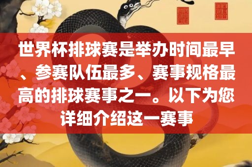 世界杯排球赛是举办时间最早、参赛队伍最多、赛事规格最高的排球赛事之一。以下为您详细介绍这一赛事