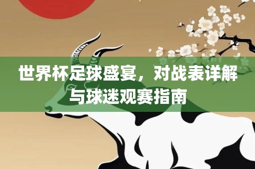 本文为你详细解读了世界杯对战表,帮助你了解各支球队的比赛安排,作为球迷,我们应该合理安排时间,制定观赛计划,关注球队实力,关注比赛动态,理性观赛,让我们一起期待这场足球盛宴的到来,共同见证每一场精彩比赛!