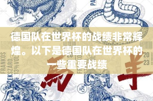 德国队在世界杯的战绩非常辉煌。以下是德国队在世界杯的一些重要战绩